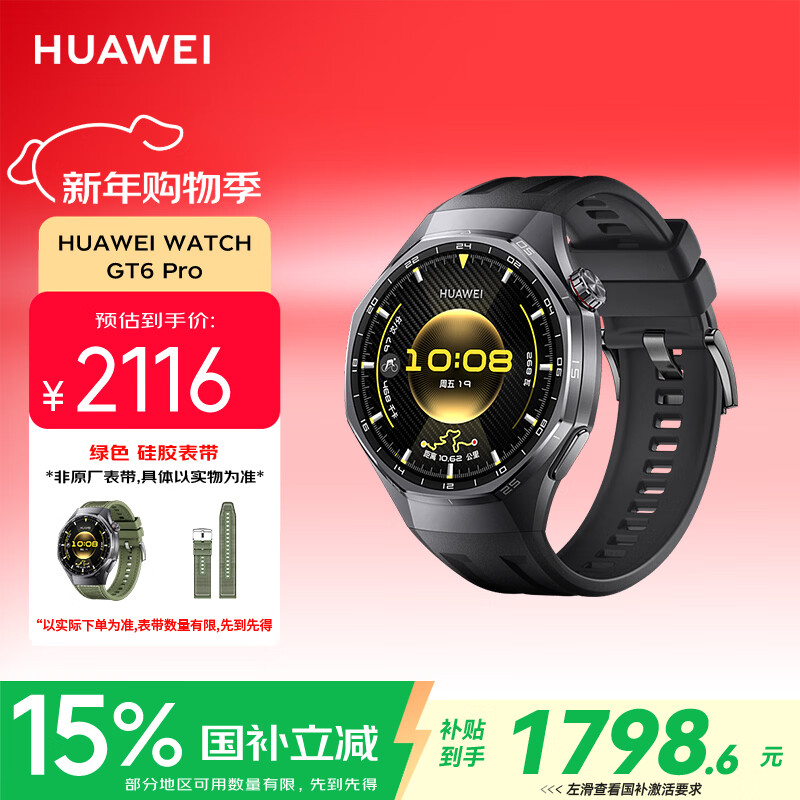 百亿补贴Huawei/华为 HUAWEI WATCH GT 6 Pro户外运动全新骑行体验超长续航蓝宝石镜面智能手表