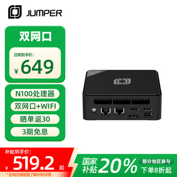 自营中柏(Jumper)【国家补贴】英特尔13代N150迷你台式机电脑PC办公mini小主机双网口N150 Pro 准系统(无内存硬盘)