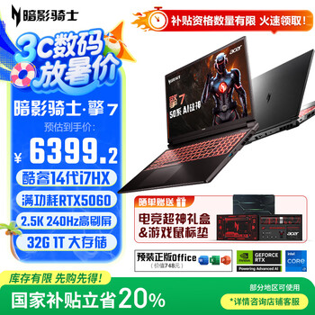 自营宏碁(acer)暗影骑士擎7 国家补贴 16英寸游戏本笔记本电脑(14代i7-14650HX 32G 1TB 2.5K 240Hz RTX5060)
