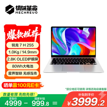 自营机械革命【国家补贴20%】星耀14( R7 H 255 32G 1T 2.8K OLED 120Hz100%DCI-P3钛银)轻薄办公游戏本