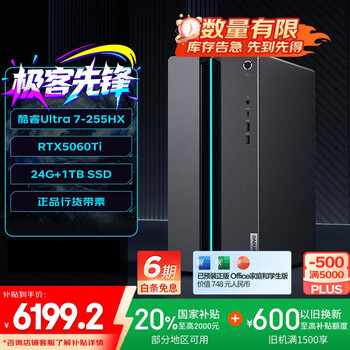 自营联想(Lenovo)GeekPro设计师游戏台式电脑主机(酷睿U7-255HX RTX5060Ti 8GB显卡 24G DDR5 1TB SSD )国家补贴20%