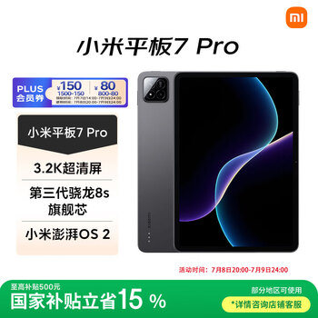 自营小米(MI) 小米平板7 Pro【平板国家补贴15%】11.2英寸 3.2K超清屏 骁龙 澎湃OS2 8+128G黑色