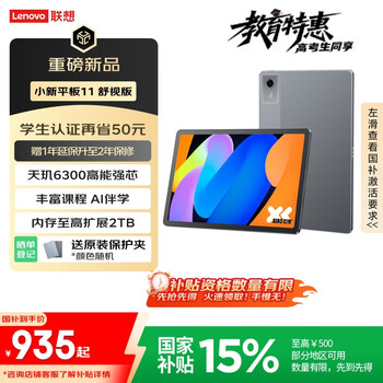 自营联想(Lenovo)小新平板11 舒视版2.5K护眼超清大屏 天玑6300AI平板电脑 旗舰性能AI伴学8+128G深空灰