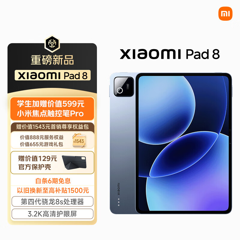 自营小米平板8 11.2英寸 3.2K 超清屏 第四代骁龙8s 澎湃OS3 8+128G 冰晶蓝 平板电脑