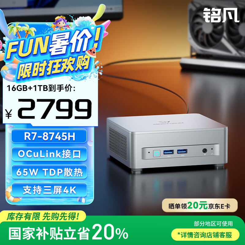 自营铭凡新品UM870 Plus 锐龙R7-8745H迷你主机oculink高性能mini主机迷你电脑台式机游戏办公