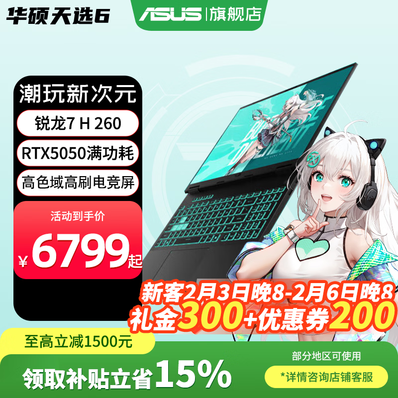 旗舰店华硕(ASUS)天选6锐龙版 2025游戏本 补贴15% 高性能锐龙HX 16英寸RTX50显卡学生游戏电竞笔记本电脑高刷 锐龙7 H 260|RTX5050|日蚀灰 16G内存|512高速固态硬盘 16:10|高刷高亮高色域电竞屏