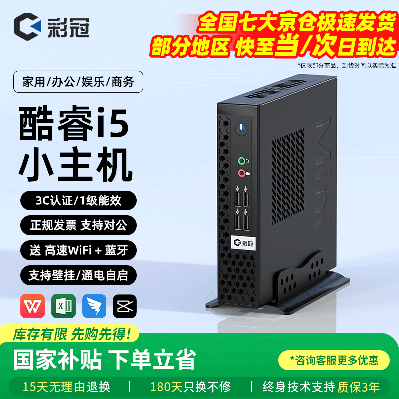 旗舰店彩冠 【十二代酷睿i5】迷你小电脑主机微型openclaw台式机miniPC-D3 网课高性能无纸办公云终端htpc A1:京仓【特价】酷睿i5/8G内存/128G固态 单主机【送 高速WiFi+蓝牙+三年质保】