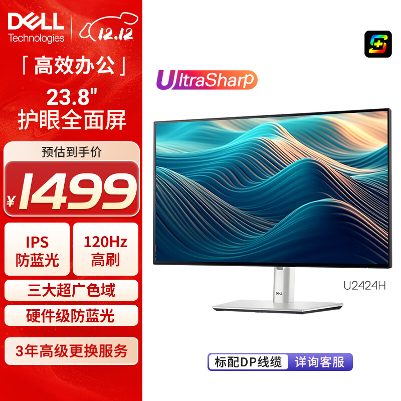 自营戴尔(DELL)UltraSharp 23.8英寸 办公显示器 FHD IPS 120Hz 高刷 Type-C15W手机充电 旋转升降 U2424H