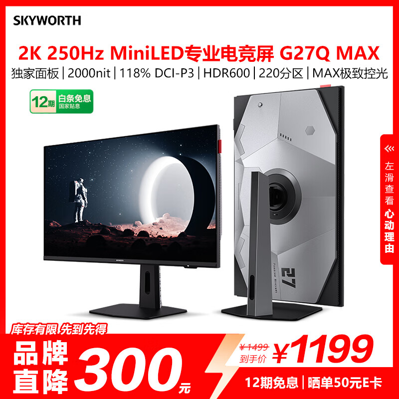 自营创维 G27Q MAX 27英寸2K250Hz Smart QD-MiniLED电竞显示器 定制面板 全链路控光 Luma Boost 瞬晰引擎