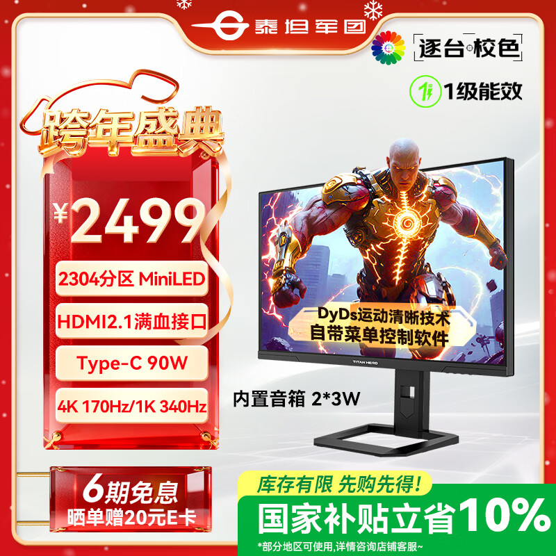 自营泰坦军团27英寸 2304分区 MiniLED 4K170Hz双模340Hz DyDs技术 HDR1400 Type-C 90W 电竞显示器P275MV MAX