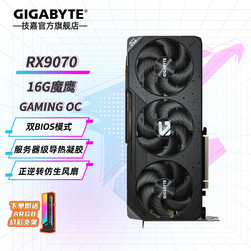旗舰店技嘉(GIGABYTE)AMD RX 9070 XT 16G显卡9070GRE 魔鹰小雕 台式机电脑游戏DeepSeek智能AI学习绘图视频渲染 RX9070 GAMING OC 16G魔鹰