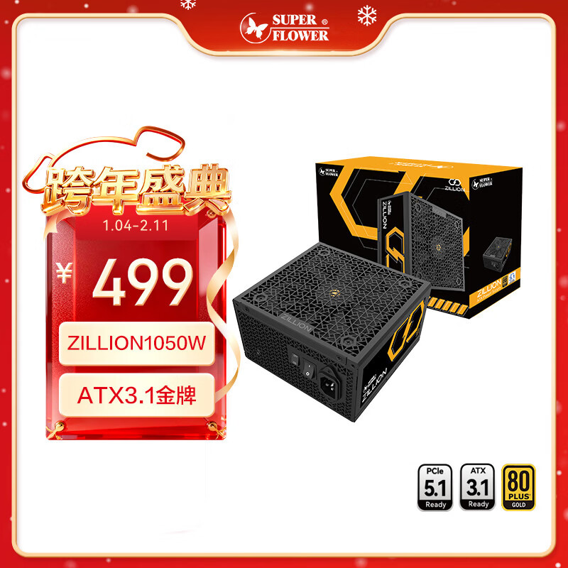 自营SUPER FLOWER振华 ATX3.1电源 ZILLION1050W 1000W +50W 金牌全模电源 台式电脑电源/五年保固