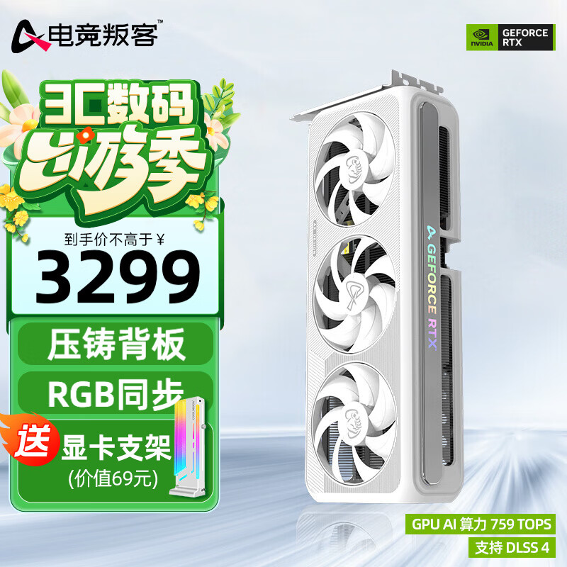 旗舰店电竞叛客 RTX5060Ti X2W/X3W OC 8G/16G 全新架构 白色甜品电竞游戏台式电脑独立显卡 RTX 5060 Ti X3W 8G
