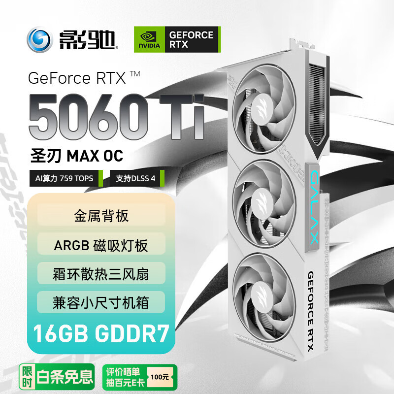 自营影驰 GeForce RTX 5060 Ti 圣刃 MAX OC 16GB GDDR7 DLSS 4 电竞光追游戏/AI本地部署显卡
