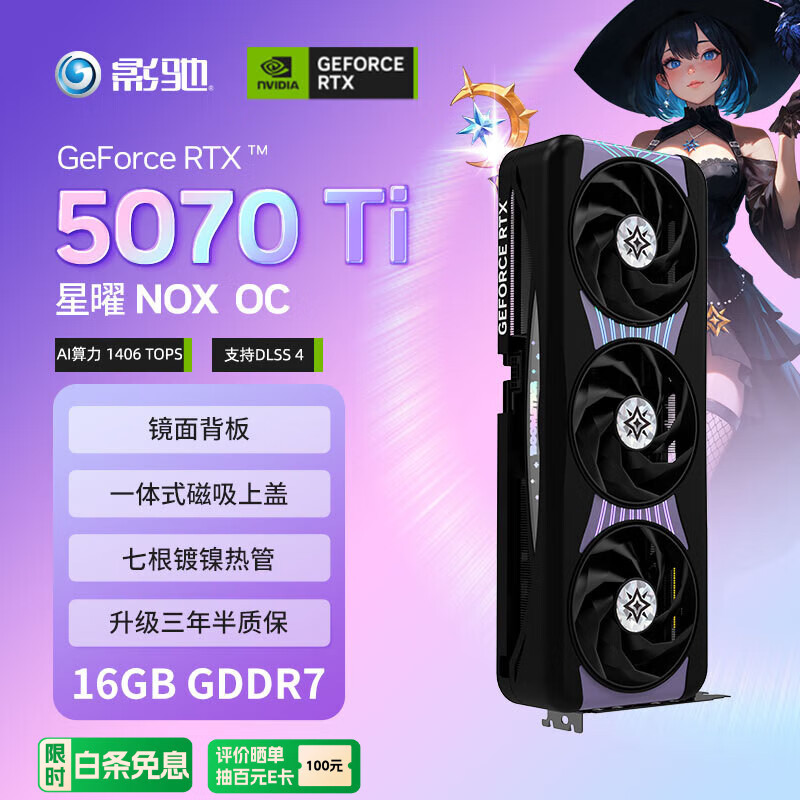 自营影驰 GeForce RTX 5070 Ti 星曜 NOX OC 16GB GDDR7 DLSS 4 电竞游戏设计剪辑AI电脑镜面显卡