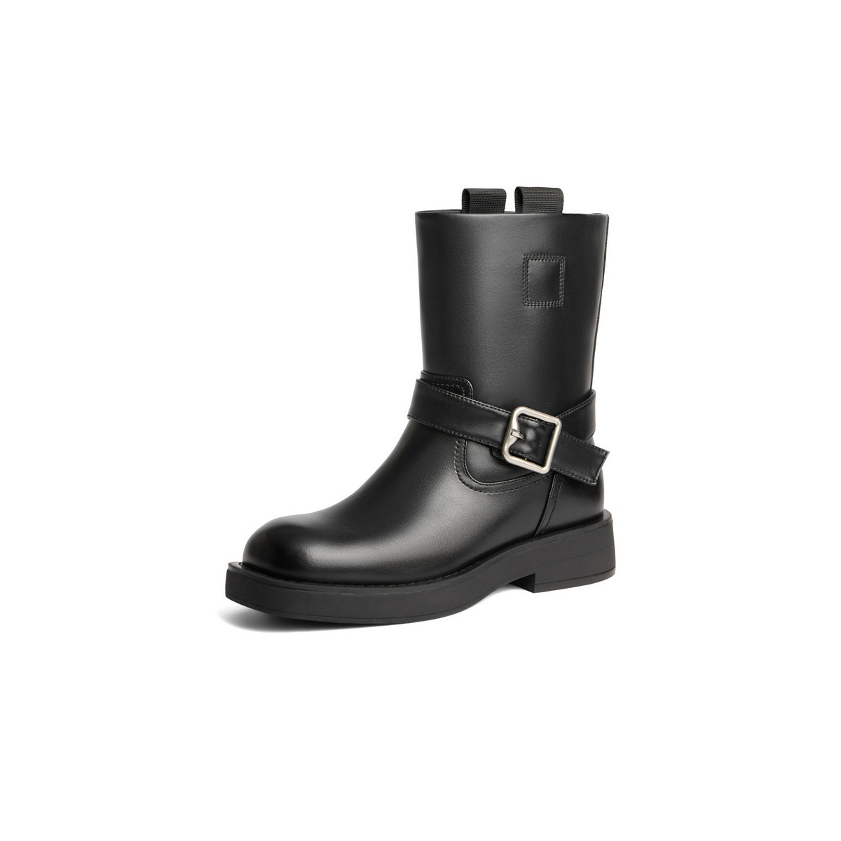 BELLE 百丽女靴子冬季骑士靴女款低筒复古短靴西部靴