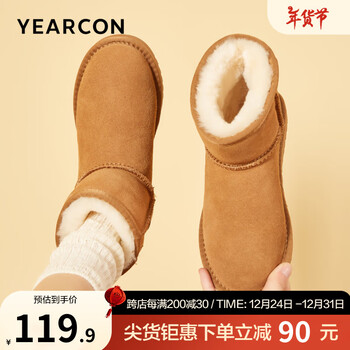 旗舰店意尔康女鞋雪地靴女2024新款厚底百搭冬季休闲平底棉鞋加绒保暖通勤靴子 土黄色 37
