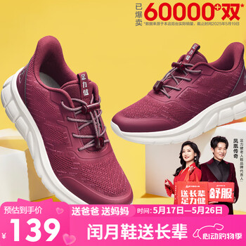 自营足力健老人鞋送礼物中老年春夏季休闲散步鞋2431380J 女 酒红 39