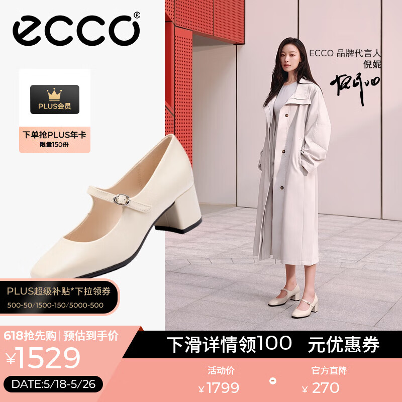 旗舰店爱步(ECCO)玛丽珍鞋女鞋 2025年夏季新款倪妮同款高跟鞋浅口单鞋 型塑290963 石灰色29096301378 37