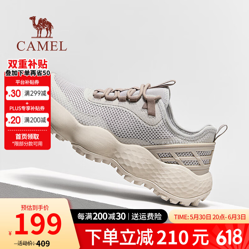 旗舰店骆驼(CAMEL)男鞋 运动鞋2025春季新款轻盈软弹舒适网面透气时尚休闲男鞋 G15M171002 灰色 42