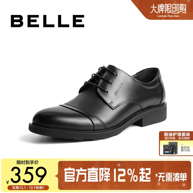 旗舰店百丽(Belle)通勤商务皮鞋男秋季真皮德比鞋通勤正装鞋3UX01CM5预售 黑色-3UX01 40 (250mm)