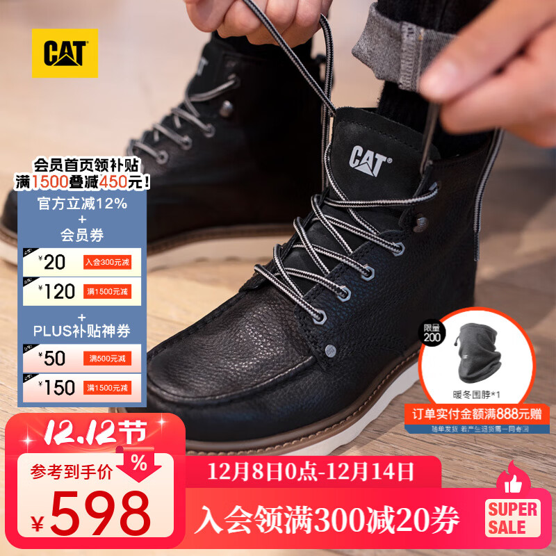 旗舰店CAT卡特马丁靴工装靴男靴荔枝纹牛皮轻户外复古机车靴P721412N3EDC09 黑色 41