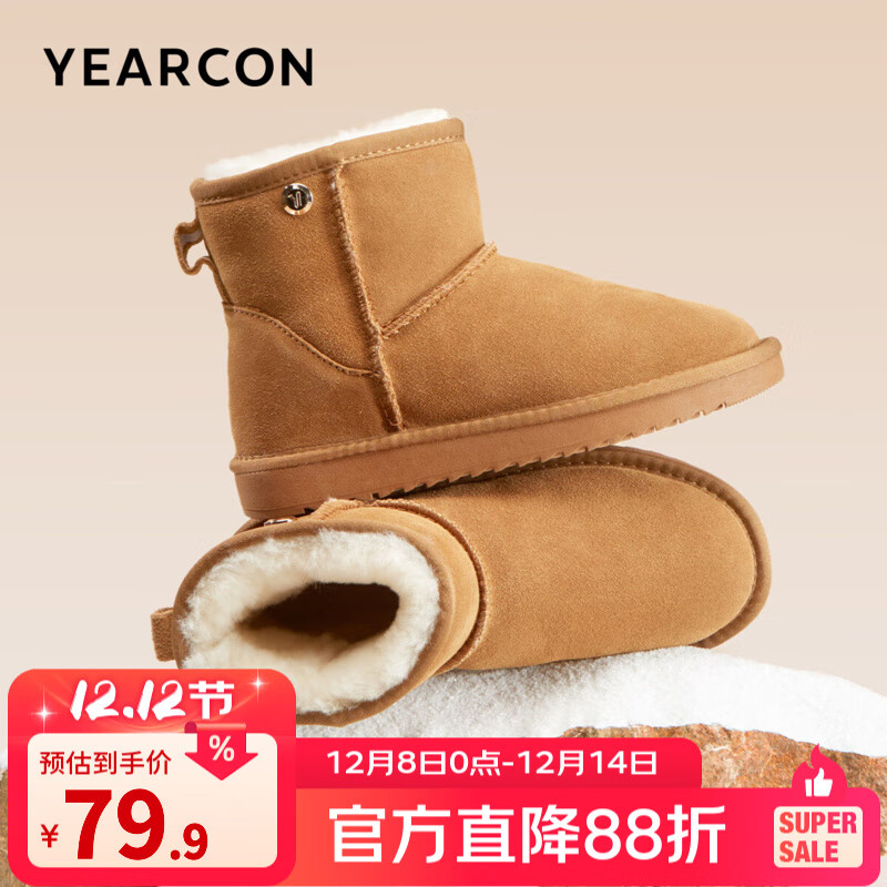 旗舰店意尔康女靴雪地靴女冬季厚底加绒加厚保暖棉鞋百搭中筒短靴妈妈棉靴子 土黄色 加绒 【靴筒羊毛内里】 37