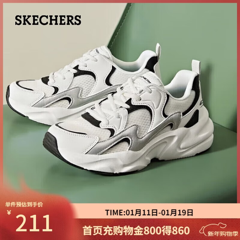自营斯凯奇(Skechers)新年礼物踏浪老爹鞋复古厚底潮流闪电鞋女冬季休闲运动女鞋117364