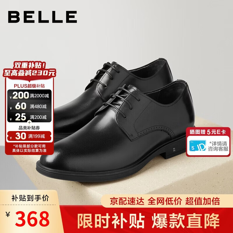 自营百丽情人节礼物男鞋商务正装休闲增高真皮鞋A0916 黑色-无钉版 40