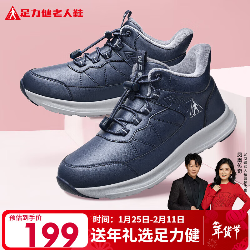 自营足力健冬季棉鞋加绒加厚中老年户外蓄热防滑保暖鞋2493208J 蓝色-男 42