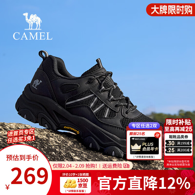 旗舰店骆驼(CAMEL)登山鞋男户外徒步鞋造极2代夏季新款网面透气运动休闲鞋子男 G16S307041 黑色 男 42