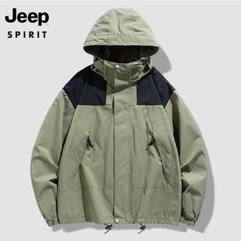 旗舰店JEEP吉普夹克男士春秋季新款三合一冲锋衣男户外保暖防风连帽外套情侣 单层浅绿色 XL