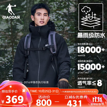 自营乔丹QIAODAN山神1代冲锋衣男秋冬季外套男防水硬壳冲锋衣防风衣夹克男