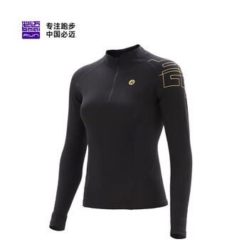 旗舰店必迈(bmai) 跑步热能压缩衣V4男女训练上衣弹力紧身长袖健身服跑步运动长袖 冬夜黑【女】 L