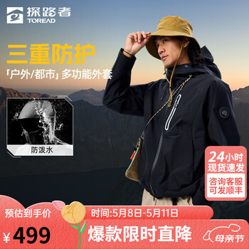 旗舰店探路者(TOREAD)【探行】软壳衣运动服户外防泼水防风外套女夹克上衣男明星同款 黑色-男款-TAEEBN81713 M