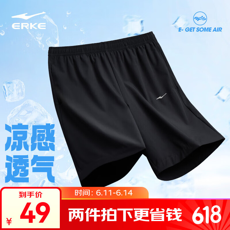 旗舰店鸿星尔克于适同款|短袖男夏季新款冰感速干衣跑步t恤衫运动上衣T恤男士 正黑-清爽运动短裤 XL