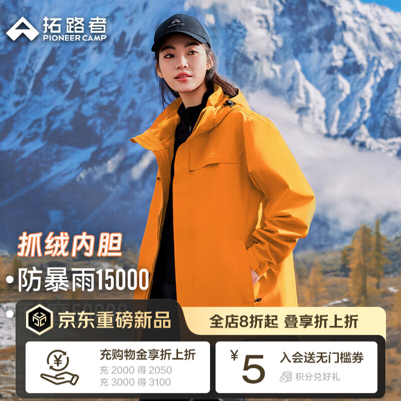 旗舰店拓路者朱雀冲锋衣三合一抓绒内胆防水防风外套女户外保暖冬季登山服硬壳 日光橙-抓绒内胆 M