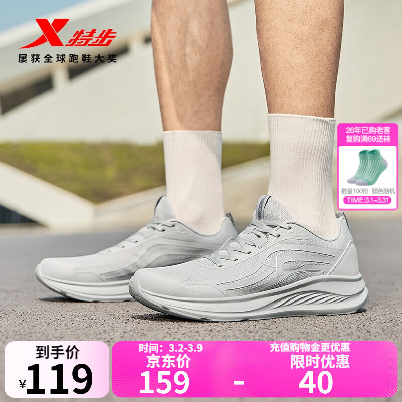 旗舰店特步跑步鞋男运动鞋25年秋季新款防滑轻盈男跑鞋户外通勤运动休闲鞋鞋 月石灰/青木灰 41