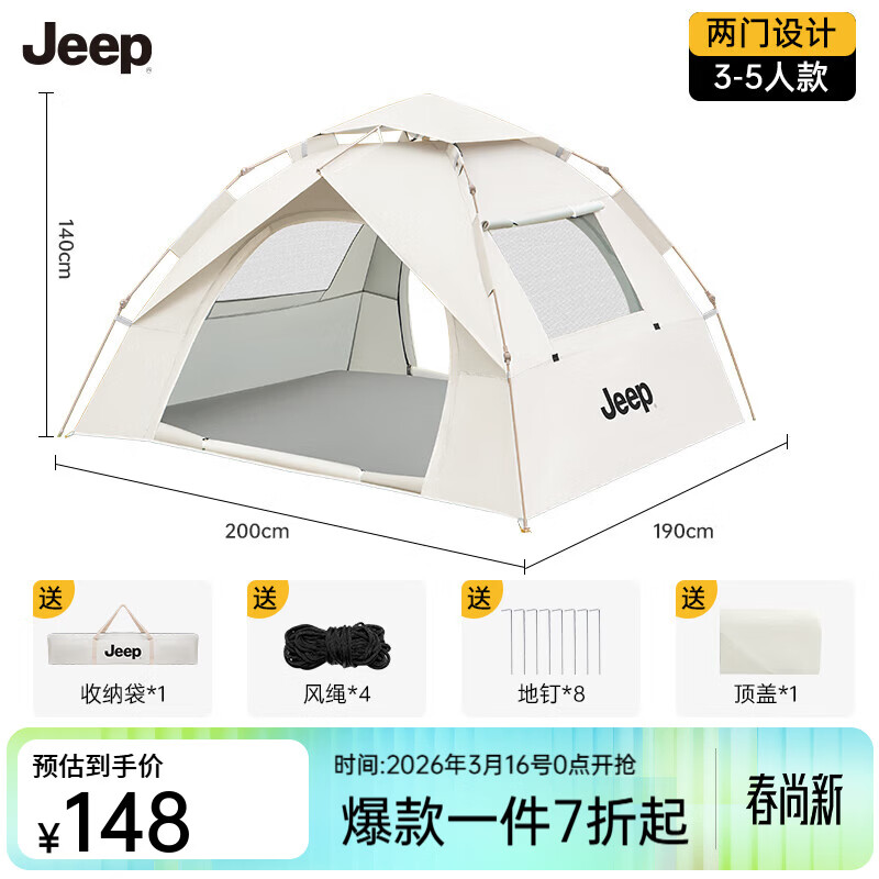 旗舰店JEEP天幕帐篷户外露营帐篷全自动速开便捷天幕二合一防晒家庭野营装备 云雾白大号