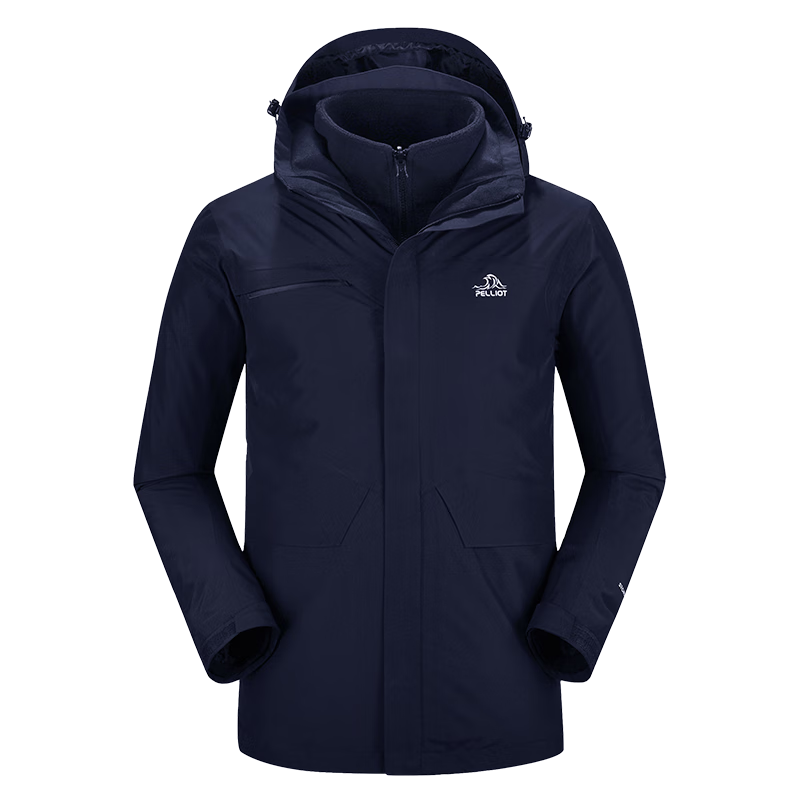 旗舰店伯希和(Pelliot)冲锋衣男三合一秋冬外套可拆卸两件套夹克户外防风保暖防泼水风衣 藏蓝色 XXL