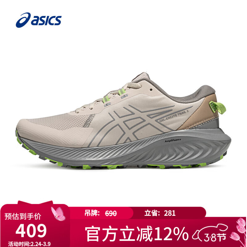 自营亚瑟士ASICS男子缓震透气越野跑鞋 GEL-EXCITE TRAIL 2 米色/灰色 41.5