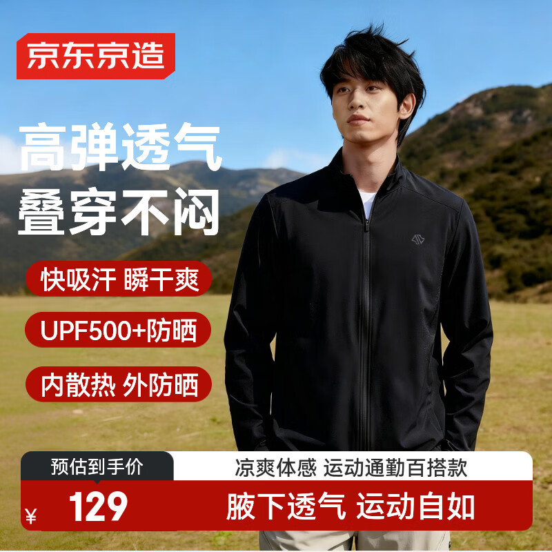 自营京东京造运动夹克外套春季男户外跑步冲锋休闲夹克高弹男士夹克 黑色L