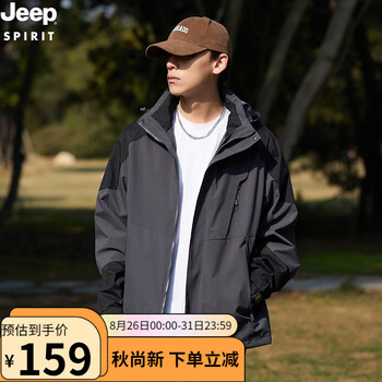 百亿补贴JEEP SPIRIT吉普 冲锋夹克男女情侣款外套百搭休闲户外防风保暖冲锋外套男 男深灰/单层 XL