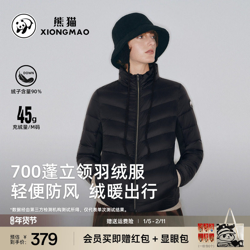 旗舰店熊猫户外羽绒服女款2025新款秋冬700蓬立领轻便防风保暖外套