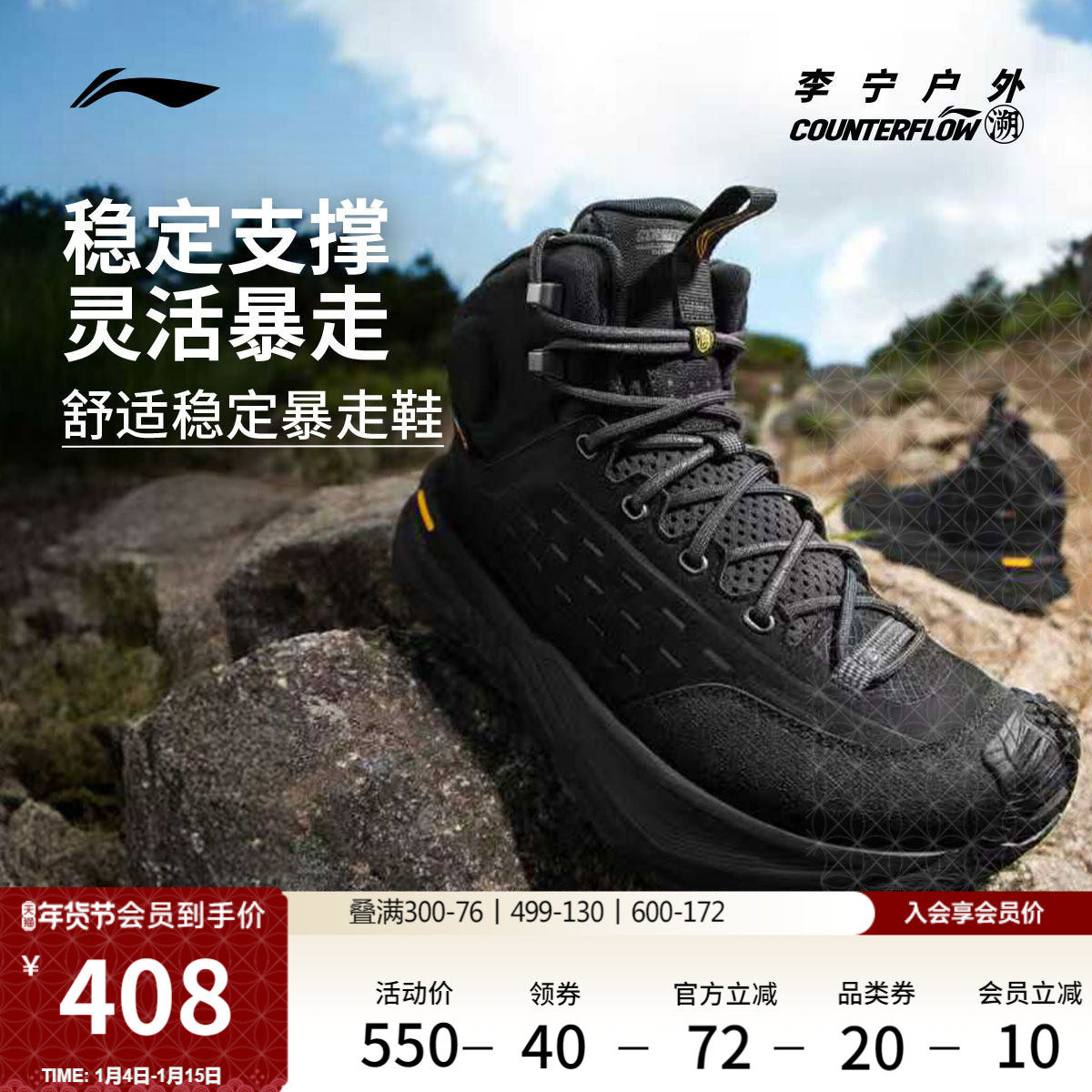 旗舰店李宁户外CF溯丨行川HIGH徒步鞋防滑软弹稳定高帮登山运动鞋男女