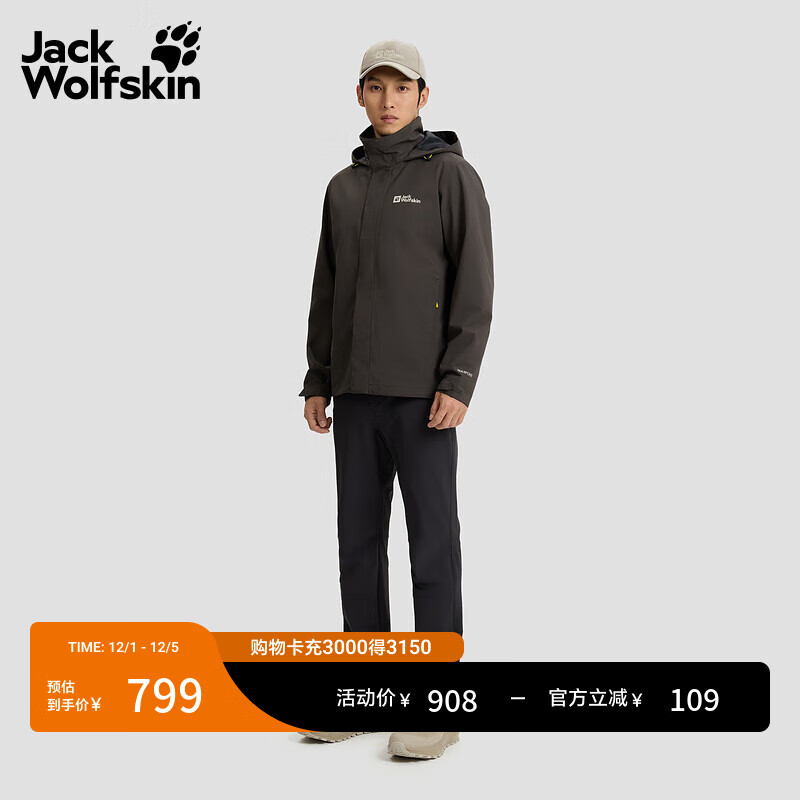 旗舰店Jack Wolfskin狼爪25秋冬TRAILTIME男款防风防水户外徒步连帽冲锋衣外套A63903A 泥棕色/D0108 M