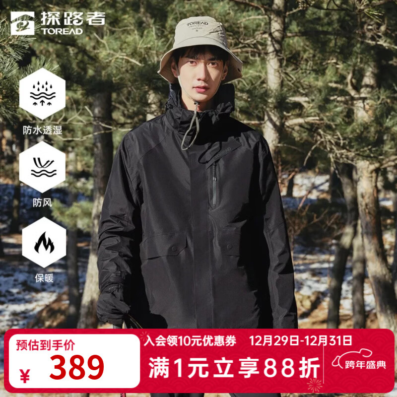 旗舰店探路者(TOREAD)机能冲锋衣三合一户外防泼水硬壳外套防风保暖抓绒内胆登山服男 黑色 XS