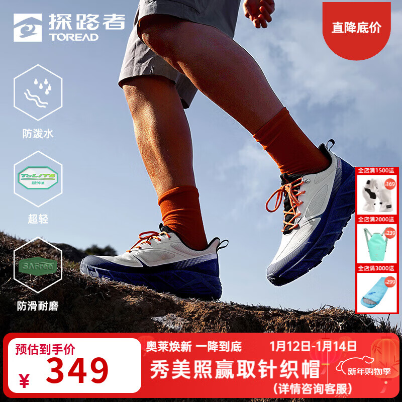 旗舰店探路者(TOREAD)男鞋徒步鞋户外防泼水休闲运动鞋超轻防滑女登山鞋2025春夏新款 男-TFAABN81756极地白蓝色 39