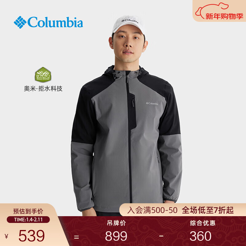 旗舰店Columbia哥伦比亚户外男子拒水干爽软壳衣徒步运动连帽外套AE0015 023 城市灰拼黑色 S (170/92A)