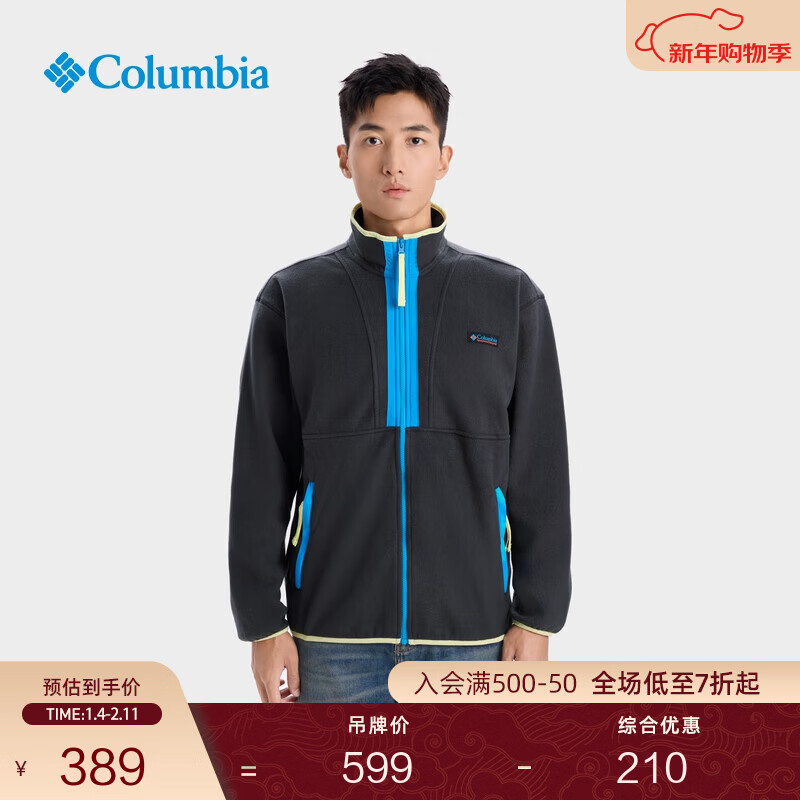 旗舰店Columbia哥伦比亚户外25秋冬新品男ICON复古系列抓绒衣外套AE9839 013 黑色拼钛金蓝 L (180/100A)